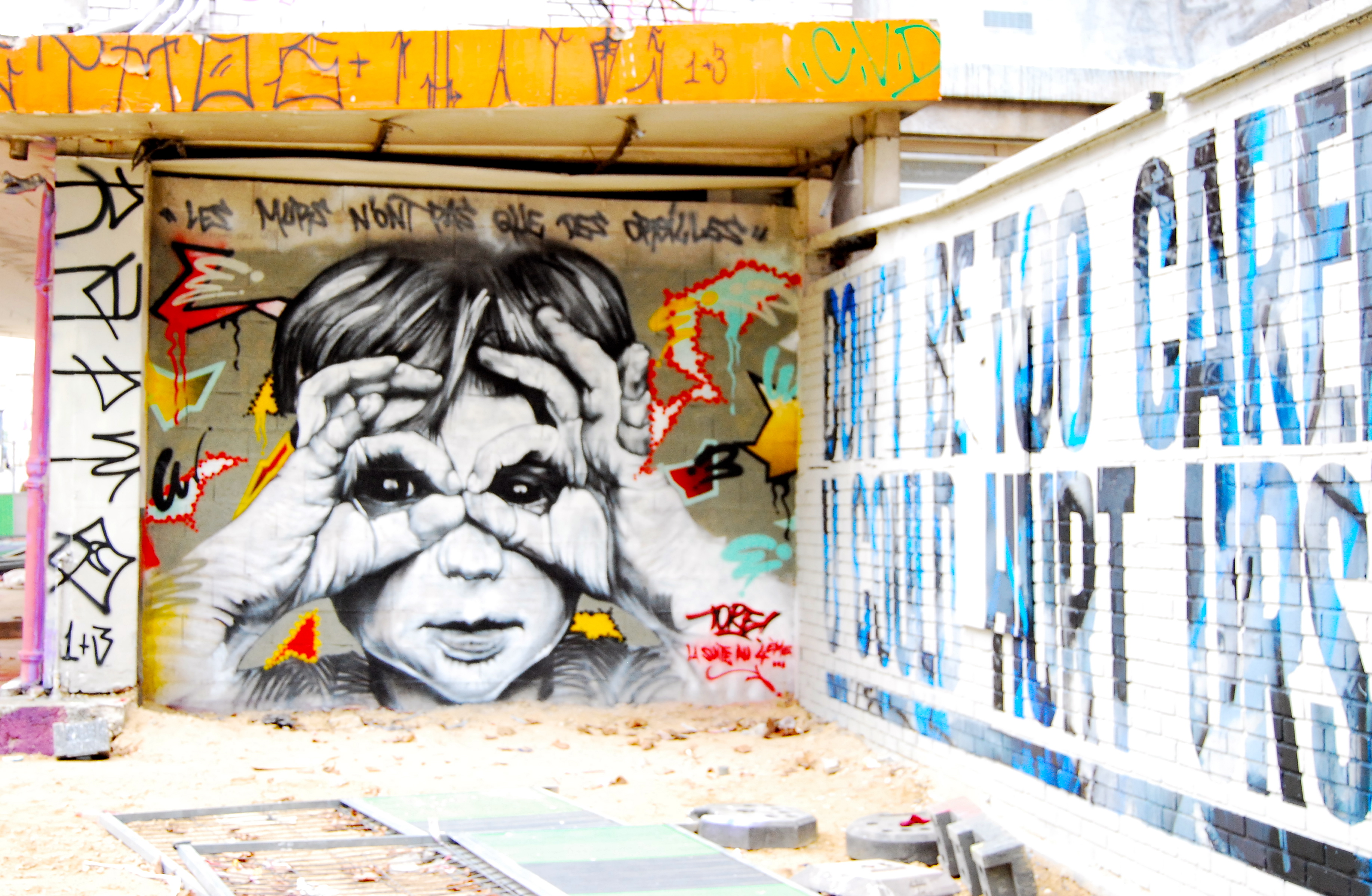 Not all street artists are just writing their names on walls. (thank God) Take the above picture for instance. The “Art is a basic need” guy can be found everywhere. Here, he has juxtaposed himself with a tiny mosaic in homage to Louise Michel. She was a revolutionary living in the late 19th century in Montmartre. She spent most of her life fighting government and living between jail cells. The people of Montmartre love her. I’m sure they enjoy being reminded of her (and her passion) every time they walk around this street corner. Moreje is the author of the mosaic in homage to Louise Michel Jerome Gulon and was completed in 2011 for the 140th anniversary of the Paris Commune.