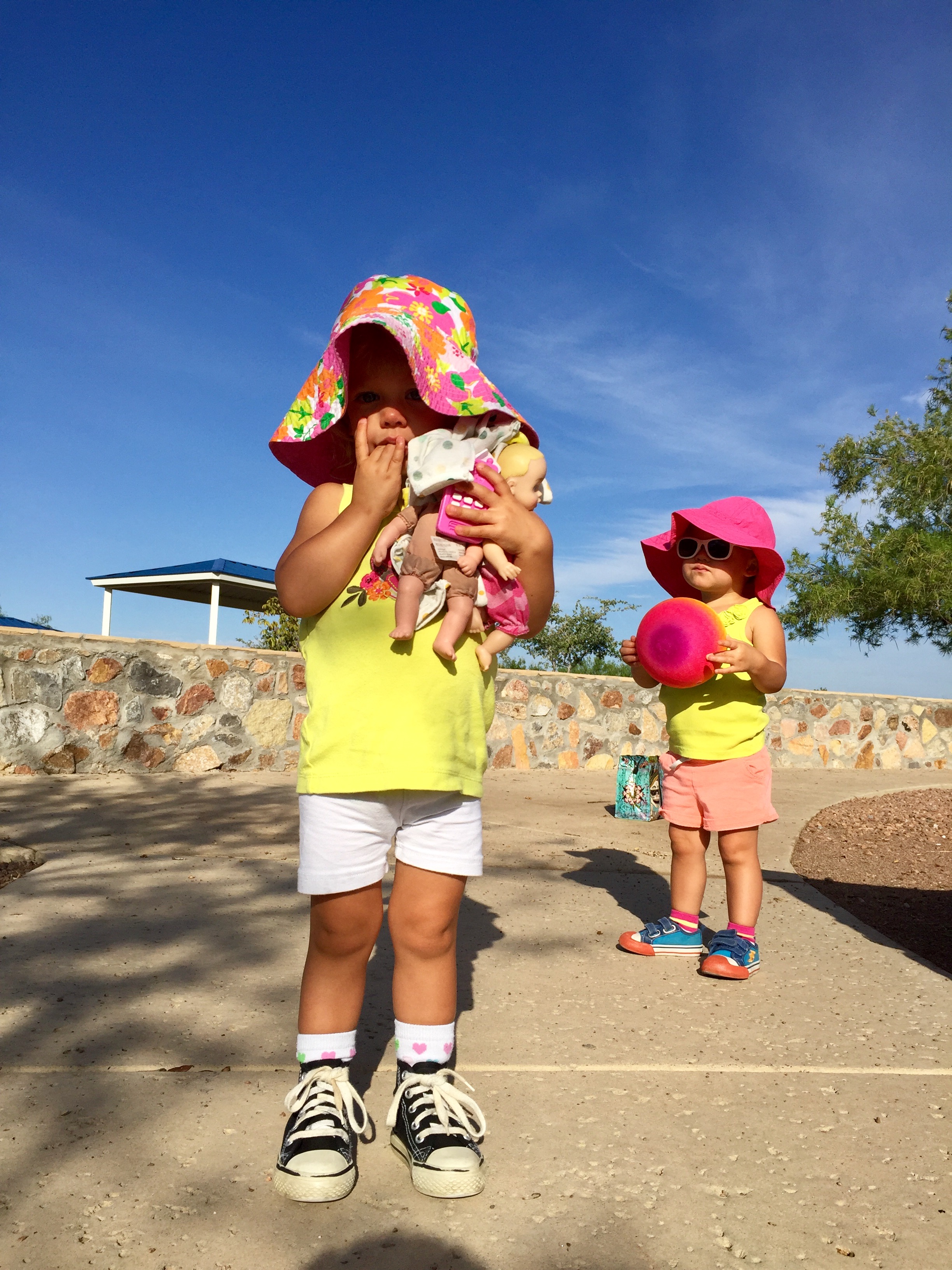 They believe they can swim. They love to jump in the pool and get airtime when dad throws them way too high in the air. Nina and Lila are both sporting a rockin’ tan.
