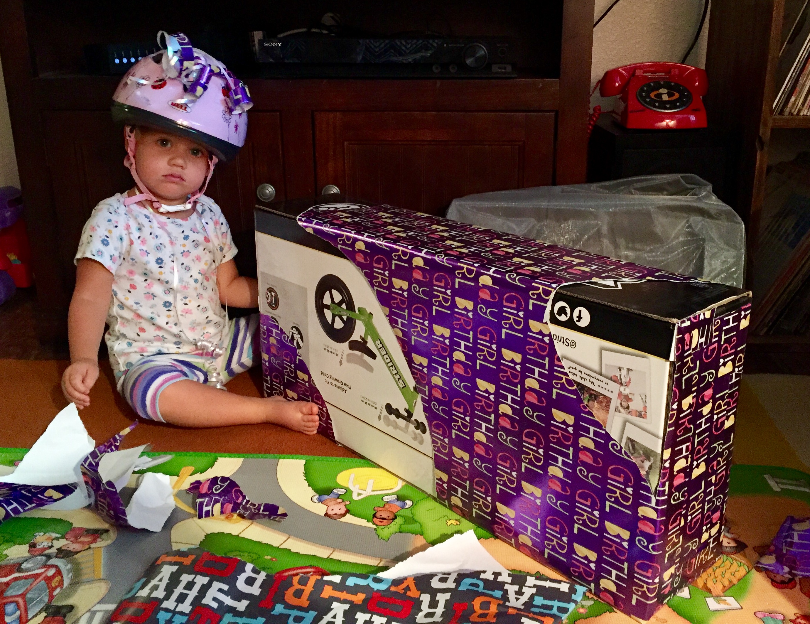 We got Nina and Lila balance bikes. Phil and I were super pumped about them. We had dreams of the girls hopping on the bikes and cruising around the house, and then around the neighborhood by dusk. Reality could not have been further from the fantasy. Nina and Lila had fun putting the helmets on, but had no interest in figuring out the bikes. Here we are a week later and any inquiry about giving the bikes a run is met with an emphatic NO. For those of you that may not know, a balance bike is a bike with no pedals. Kids learn to balance before they learn to peddle. Needless to say, I am happy for the girls that many other family members have given them birthday gifts that they are actually enjoying.